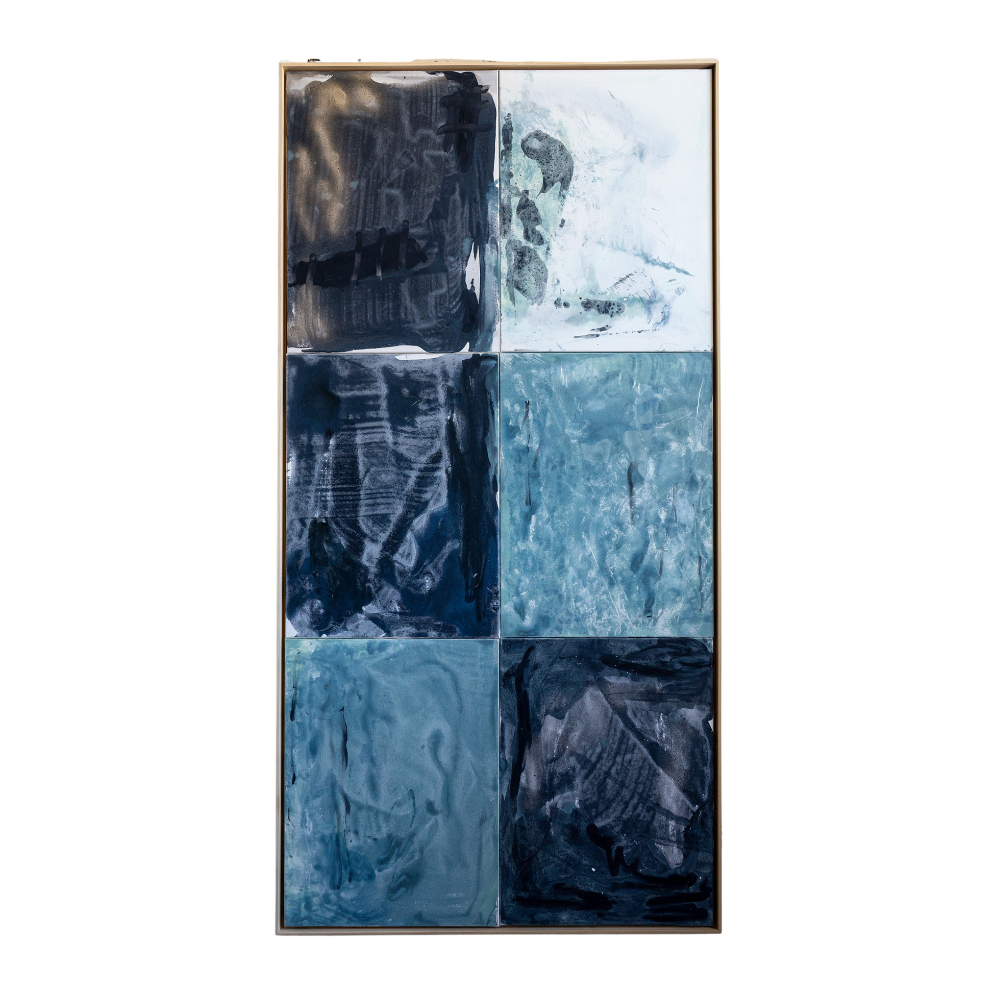 The underpainting serves as an ode to the sea, rendered in natural blues and greens to capture its ever-changing hues. Layered above, white waves create striking contrasts, embodying both the beauty and chaos of the ocean’s surface.