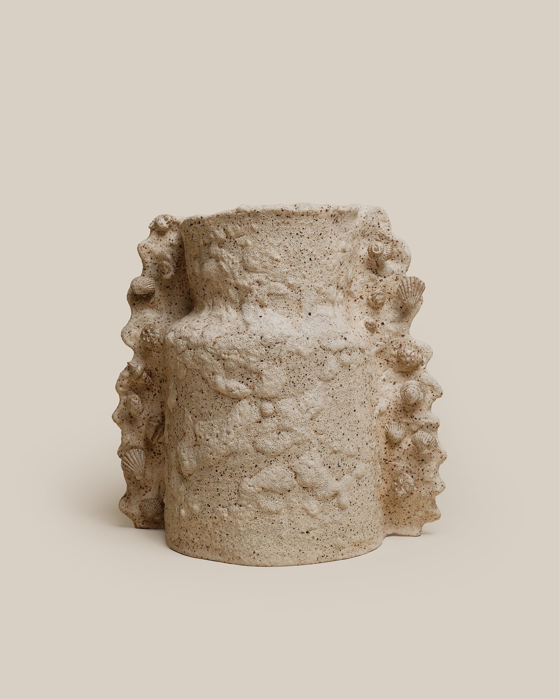 Meticulously handcrafted, this White Vase from Féte Ceramics captures the essence of coastal serenity. The textured ceramic surface evokes natural seaside elements while maintaining a versatile neutral palette. Each piece exhibits subtle variations, reflecting its artisanal origin and providing an elegant vessel for floral arrangements or a sophisticated standalone accent in contemporary interiors.