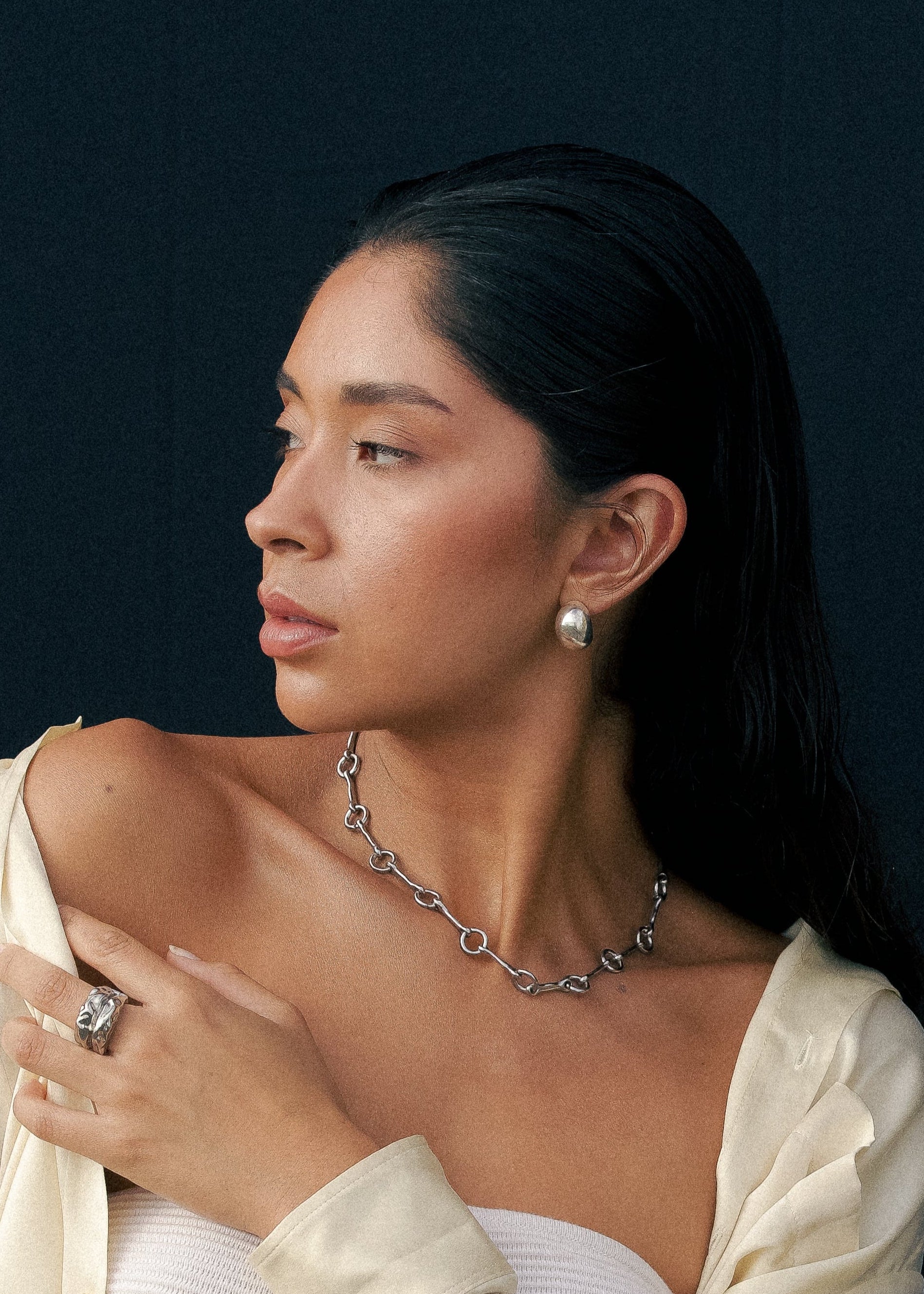 Introducing GINEBRA, the signature chain of our collection. This is not your typical chain—each link was uniquely designed, creating a bold, sculptural piece that stands out in every way. No two links are alike, making GINEBRA a true statement of individuality and artistry. Designed for the woman who dares to be different, this chain is more than jewelry—it’s a reflection of confidence, strength, and effortless elegance.