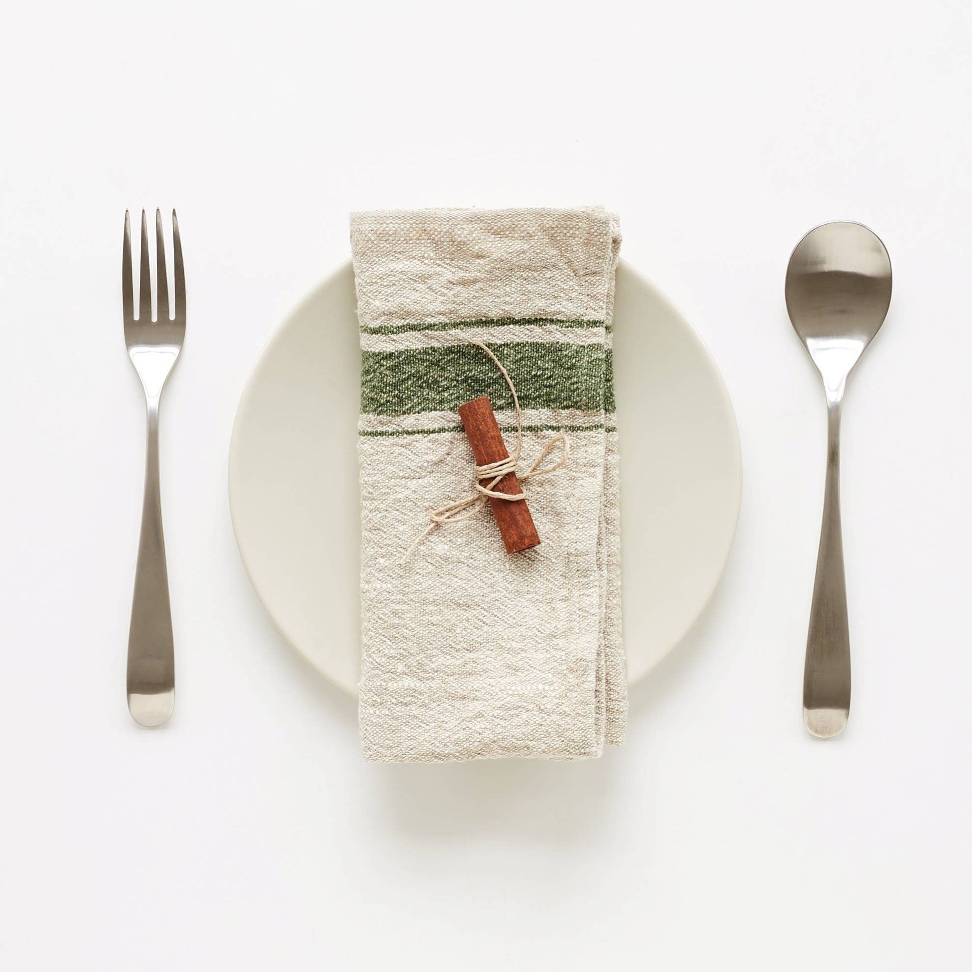 Green Stripe Vintage Linen Napkins Set of 2