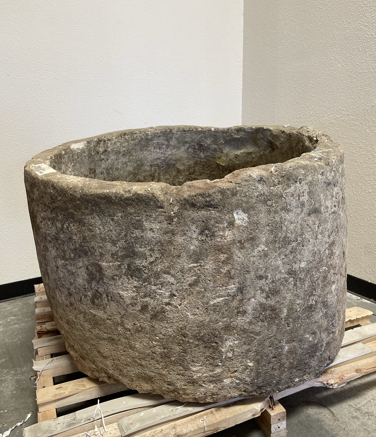 This vintage limestone trough from Indonesia brings natural charm to any space. Its rounded shape makes it ideal for use as a planter or a soothing water fountain, adding understated elegance to your garden or patio. Durable and timeless, it blends seamlessly with various outdoor styles while offering practical functionality.