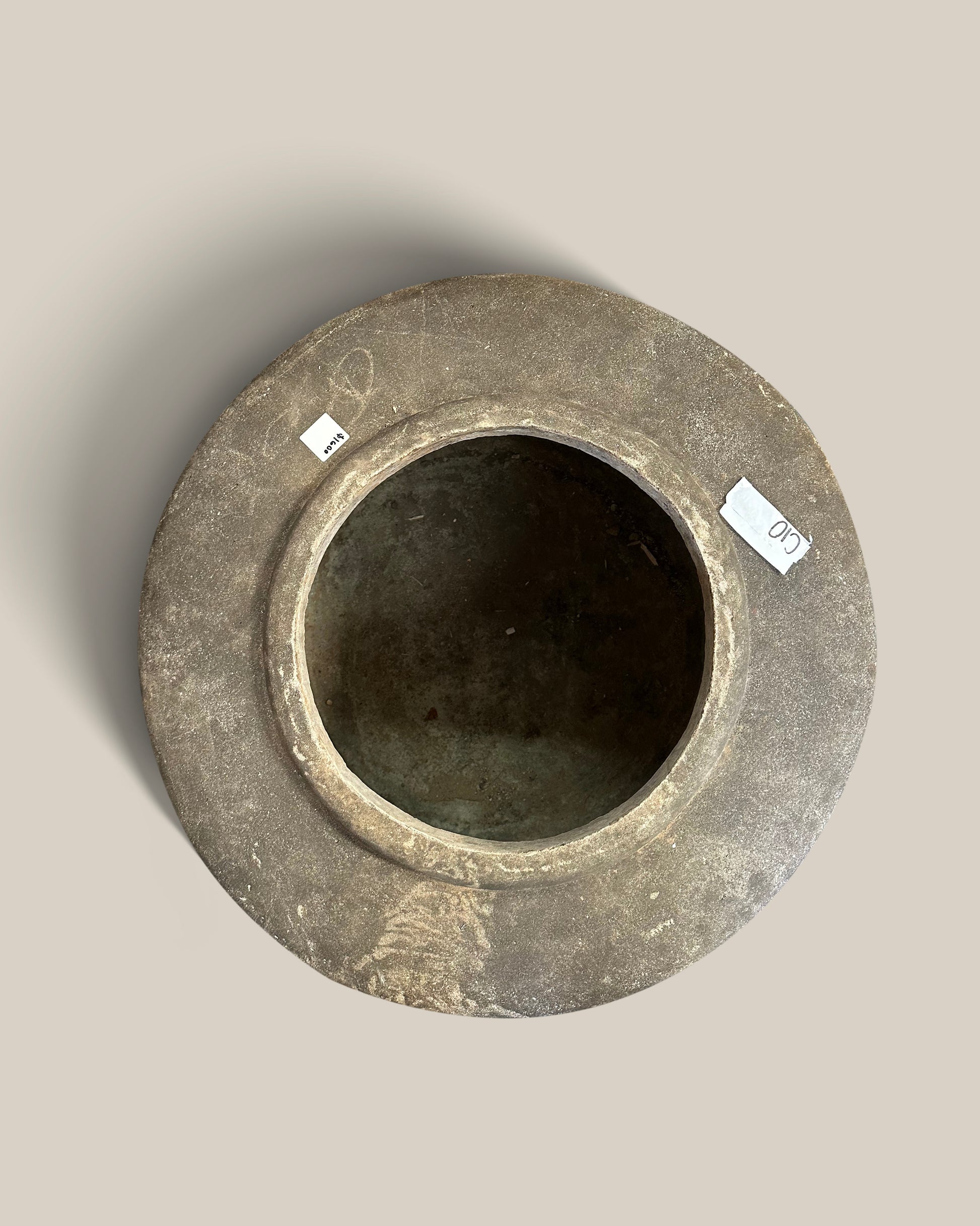 This vintage stone vessel from Indonesia brings natural charm to any space. Its rounded shape makes it ideal for use as a planter or a soothing water fountain, adding understated elegance to your garden or patio. Durable and timeless, it blends seamlessly with various outdoor styles while offering practical functionality.