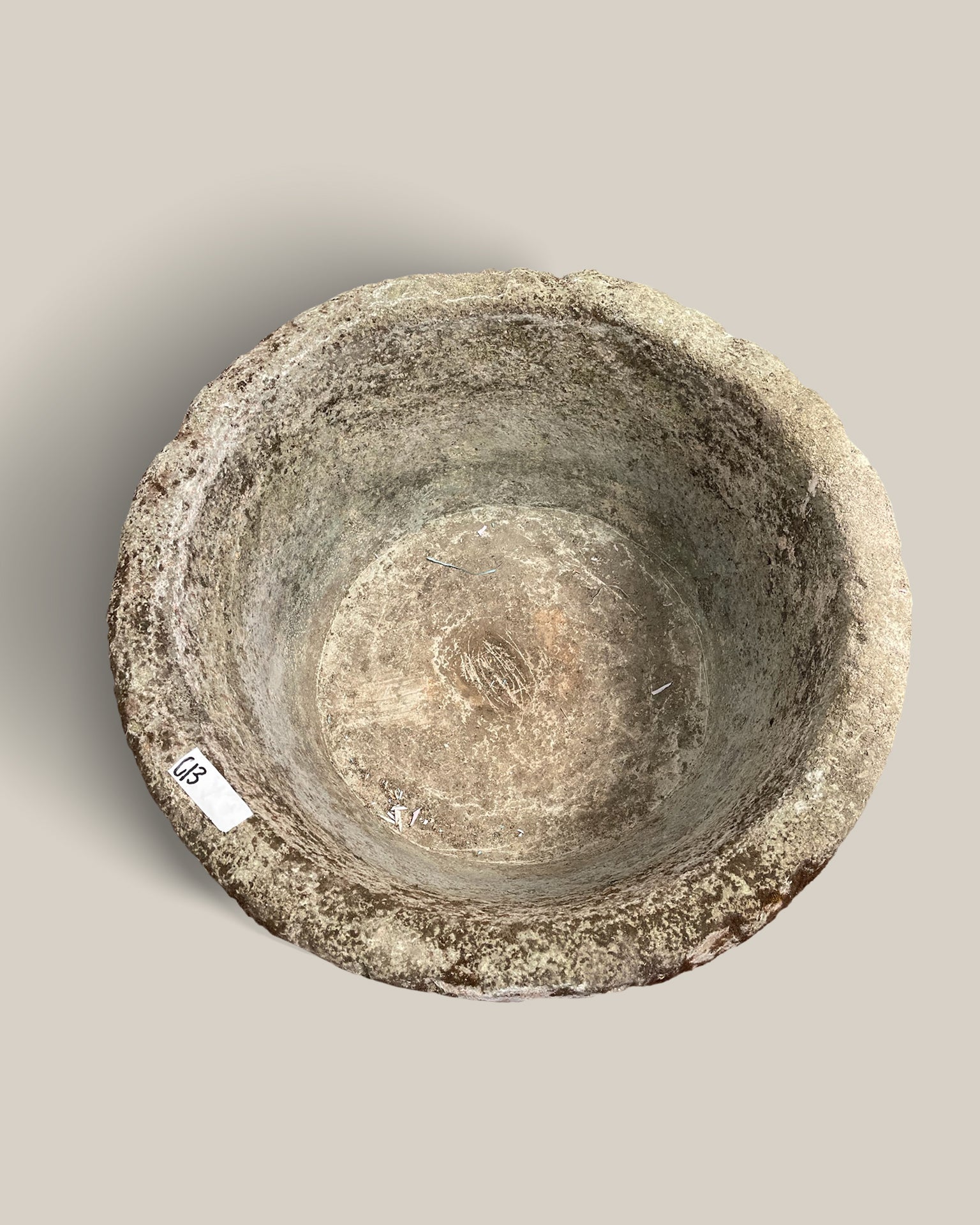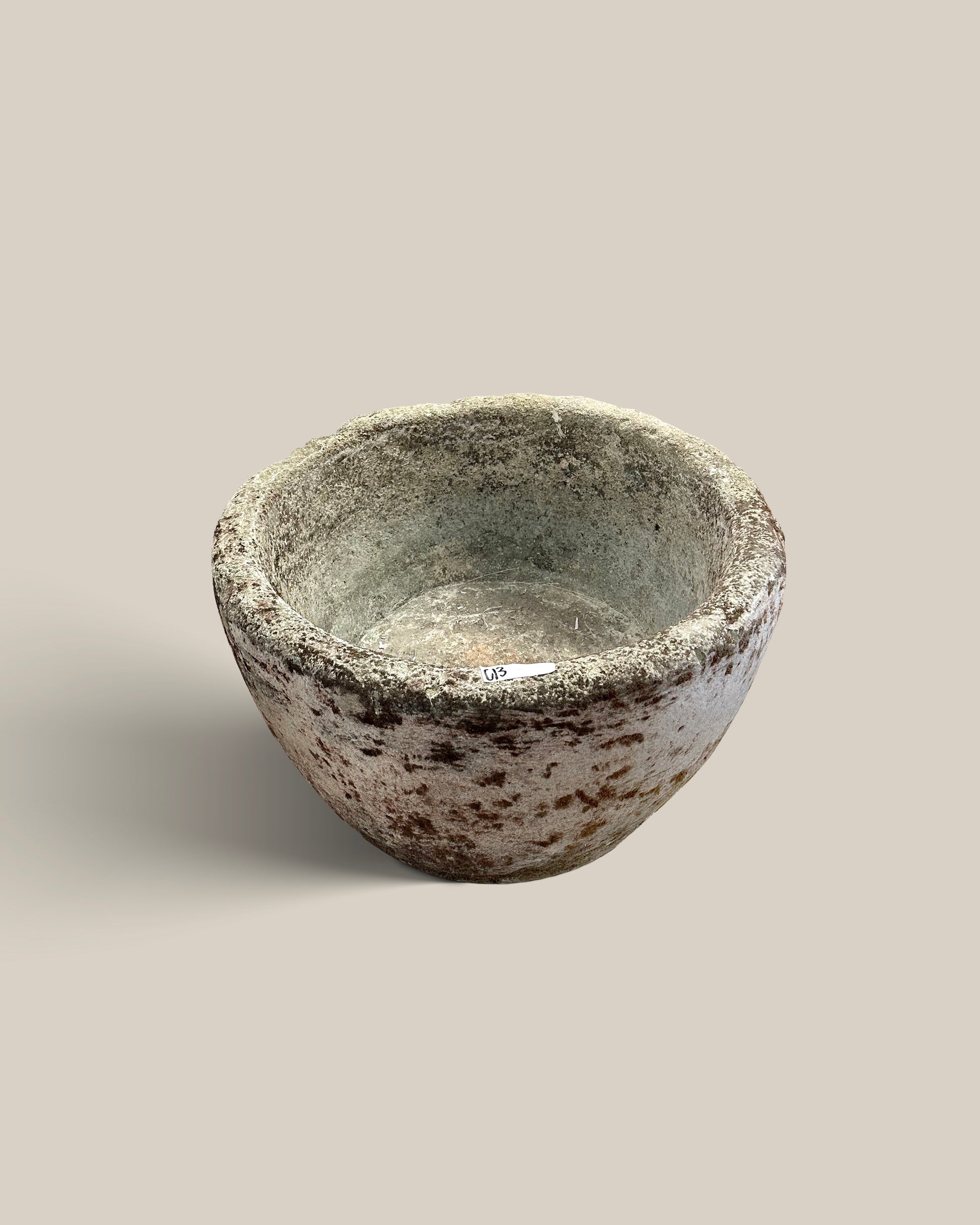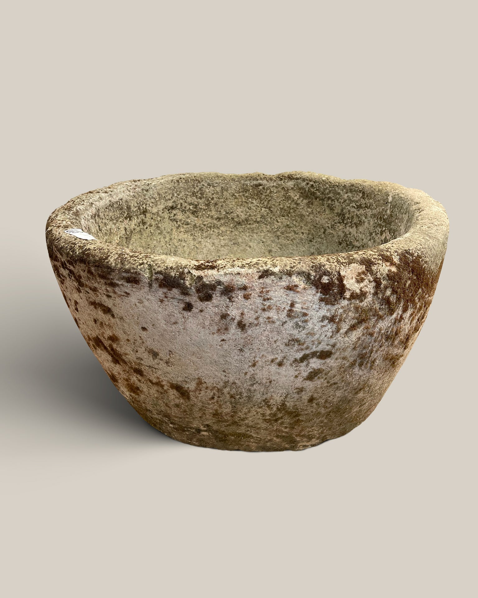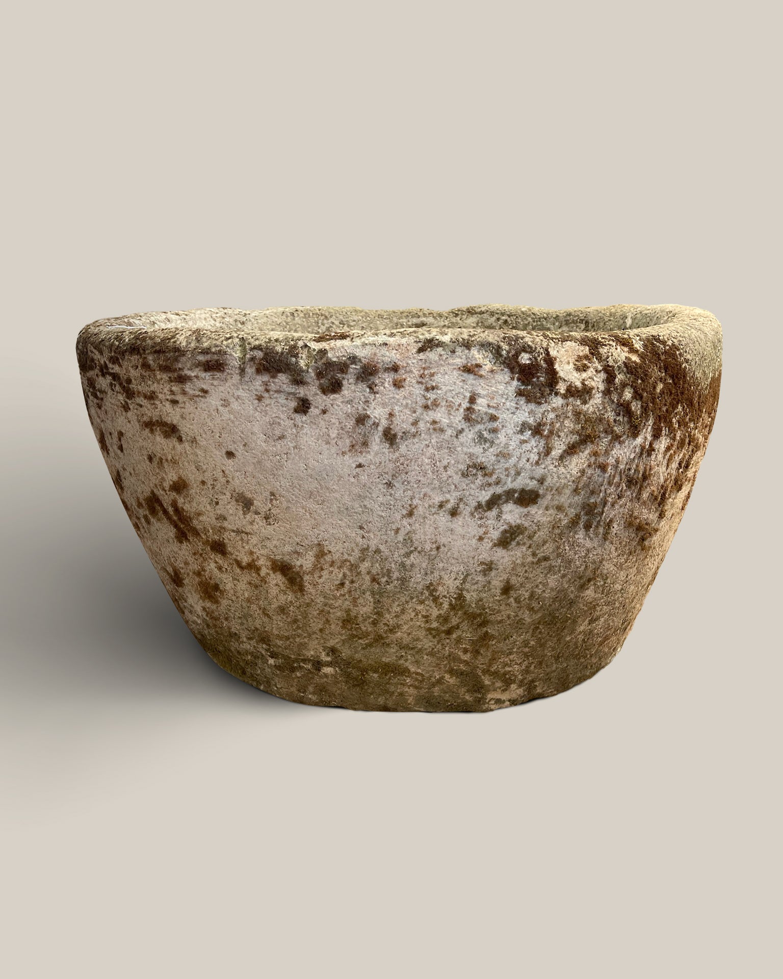 This vintage stone vessel from Indonesia brings natural charm to any space. Its rounded shape makes it ideal for use as a planter or a soothing water fountain, adding understated elegance to your garden or patio. Durable and timeless, it blends seamlessly with various outdoor styles while offering practical functionality.