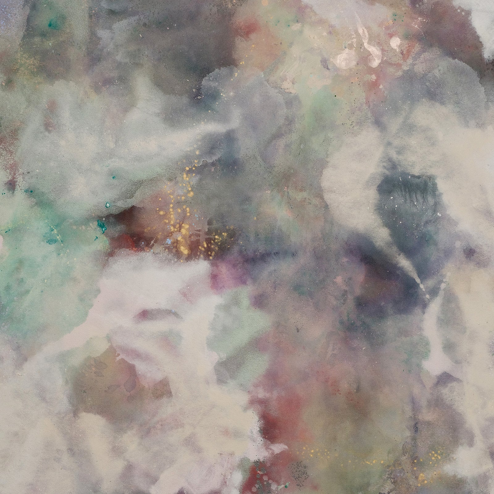 Gabs translates this phenomenon through silver sparkles layered on lighter works and yellow dots dispersed across darker canvases, evoking the presence of fireflies. The interplay of dark and luminous hues reflects the gradual shift between day and night, while the translucent layers capture the essence of twilight’s soft glow.